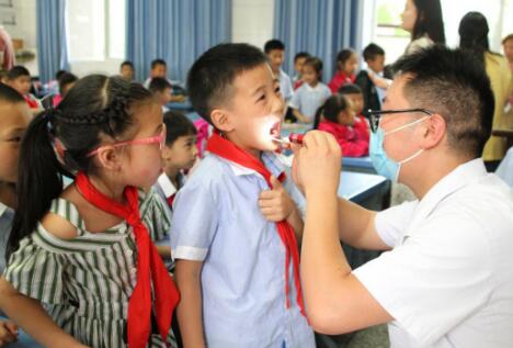 ? ? ? ?5月31日下午,在國際“六·一”兒童節(jié)來臨之際,我院口腔科副主任廖建春、護士鄒悅與兒科主任周維一起到深雪堂小學(xué)為學(xué)生們送去了一堂別開生動的《口腔保健》《水痘防治》健康知識講座,同時分別為300余名學(xué)生檢查了牙齒,100余名學(xué)生進行了體格檢查。 ???????