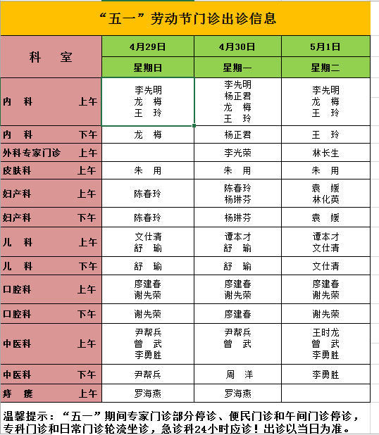 “五一”勞動(dòng)節(jié)門(mén)診出診信息