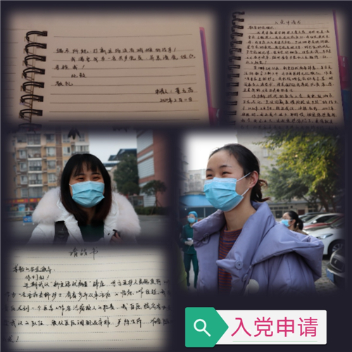 “我作為一名抗疫一線的醫(yī)務人員,來到武漢之后,看到一線醫(yī)護人員的艱辛,看到社區(qū)工作者的堅守,看到同事們的敬業(yè),看到全國人民的支援……我倍受感動,發(fā)自內(nèi)心地向黨組織靠攏,不獲全勝,決不收兵,請黨組織在疫情防控實戰(zhàn)中考驗我!”。經(jīng)過深思熟慮,周歡鄭重地遞交了入黨申請書。