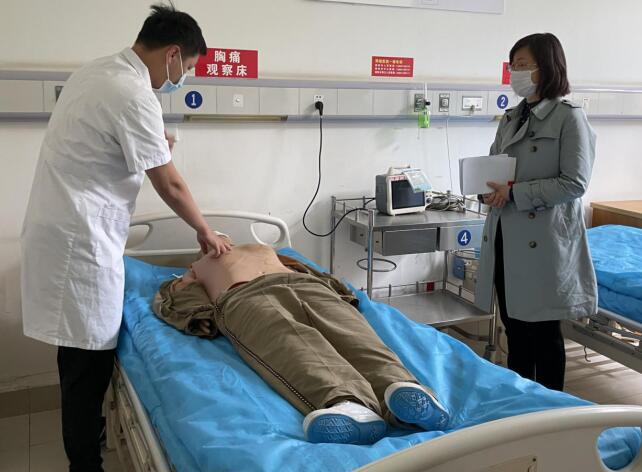 ? ? ? ? ?隨后,督導(dǎo)組專家劉華英到急診科、呼吸與危重癥醫(yī)學(xué)科查閱了全科醫(yī)生轉(zhuǎn)崗培訓(xùn)相關(guān)資料,就一些細(xì)節(jié)問題進(jìn)行了面對(duì)面交流。專家組還現(xiàn)場(chǎng)隨機(jī)抽考了三名學(xué)員操作心肺復(fù)蘇,對(duì)操作表現(xiàn)優(yōu)秀的學(xué)員給予了高度的肯定,也對(duì)操作不佳的給予了點(diǎn)評(píng)和指導(dǎo)。