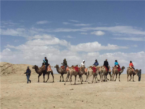 ? ? ? ?我們來(lái)到了莫高窟,這里擁有大量的精美壁畫(huà)、石窟,是世界聞名的佛教藝術(shù)勝地。嘉峪關(guān)是明長(zhǎng)城西端的第一重關(guān),又被譽(yù)為“天下第一雄關(guān)”,是古代“絲綢之路”的交通要塞,歷經(jīng)千百年歲月的侵蝕,依然橫臥在戈壁灘上,巍峨朱色的城樓與遠(yuǎn)處祁邊山雪峰交相輝映,登城樓遠(yuǎn)眺,蒼涼、廣袤的戈壁風(fēng)光盡收眼底,城墻上迎風(fēng)飛揚(yáng)的旌旗似在訴說(shuō)著絲路曾經(jīng)的繁榮。
