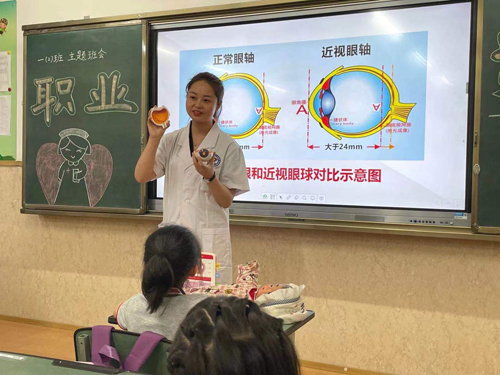 ? ? ? ?為了幫助更多的孩子樹立正確的護(hù)眼觀念,5月23日,羅江區(qū)人民醫(yī)院眼耳鼻喉科護(hù)士長文曉霞受安州東辰國際學(xué)校邀請,走進(jìn)一年級的班會(huì)課堂,在即將到來的6月6日“全國愛眼日”前夕開展了“保護(hù)視力,預(yù)防近視”為主題的健康宣講。