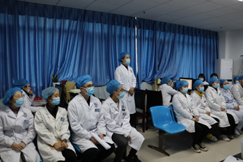 ? ? ? ?首先何淼對教學(xué)查房流程和內(nèi)容進(jìn)行了專項(xiàng)培訓(xùn),對患者進(jìn)行了現(xiàn)場教學(xué)查房。通過詢問患者病史、體格檢查,給參加教學(xué)查房的醫(yī)護(hù)人員起到了示范性作用。同時(shí),參與查房人員均邊聽、邊記、邊思考,就病史總結(jié)、現(xiàn)場查體、診療方案等積極發(fā)言和提問,何淼進(jìn)行了逐一分析點(diǎn)評,并就下一步治療的方案選擇給予了意見和建議。