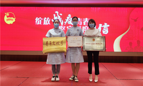 ? ? ? ?2020年五四青年節(jié),我院四名青年和四個團(tuán)組織獲得表彰。其中,我院ICU護(hù)士董方芮被共青團(tuán)中央授予“全國優(yōu)秀共青團(tuán)員”稱號,被共青團(tuán)四川省委授予“四川省優(yōu)秀共青團(tuán)員”榮譽(yù)稱號;我院呼吸與危重癥醫(yī)學(xué)科被共青團(tuán)德陽市委評選為“德陽市青年文明號”;院團(tuán)委書記張敏被共青團(tuán)羅江區(qū)委評為“2019年度優(yōu)秀共青團(tuán)干部”,周歡、楊靖兩名團(tuán)員被被共青團(tuán)羅江區(qū)委評為“2019年度優(yōu)秀共青團(tuán)員”,院團(tuán)委、內(nèi)科團(tuán)支部、外科團(tuán)支部分別被共青團(tuán)羅江區(qū)委評為“2019年度五四紅旗團(tuán)委”“2019年度五四紅旗團(tuán)支部”。 ??????(院辦 ?唐春蘭)