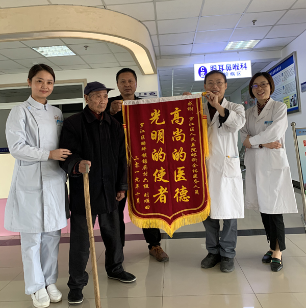 ? ? ? ?“感謝,感謝,太感謝你們了!我終于看得到了,好清楚哦......”10月14日,家住羅江區(qū)略坪鎮(zhèn)錦屏村6組的八旬劉大爺家人將寫有“高尚的醫(yī)德,光明的使者”送到我院眼耳鼻喉科。